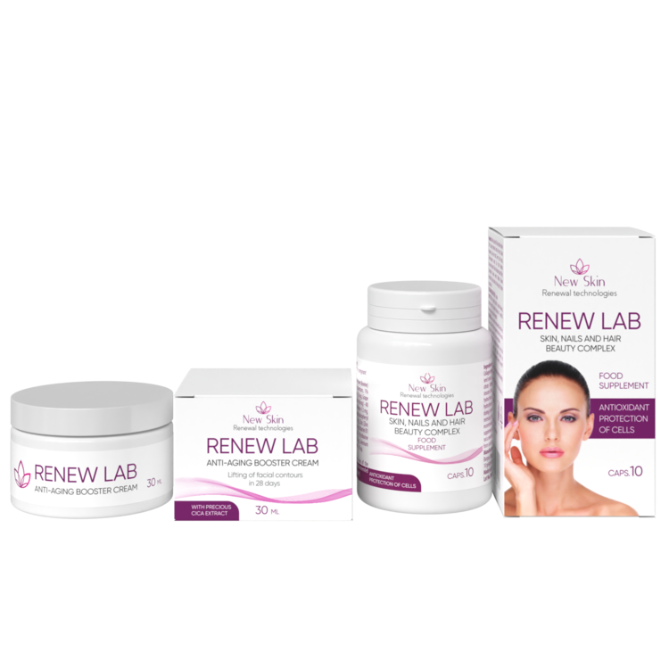 Renew Lab is a natural complex remedy for maintaining youthful skin, which works from the inside and outside. Smoothes wrinkles and facial wrinkles, saturates the skin with vitamins and restores its beauty, youth, radiance and elasticity.