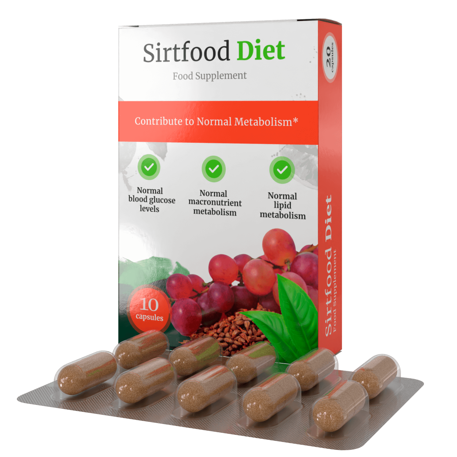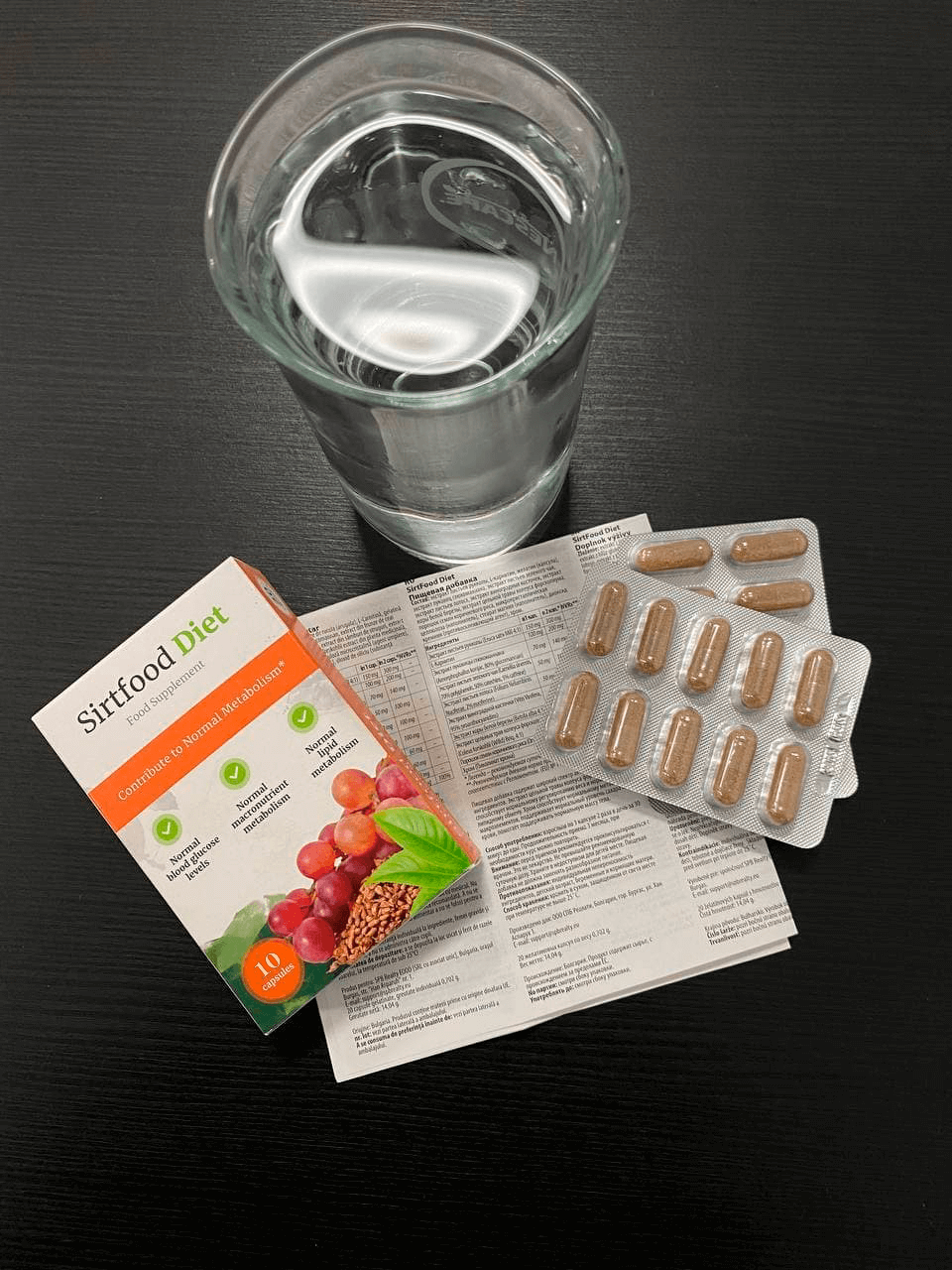 As part of the preparation SirtFood Diet arugula, grape seeds, lotus. Take 2 capsules in the first half of the day during meals. Normalizes digestion, helps to get rid of excess weight.